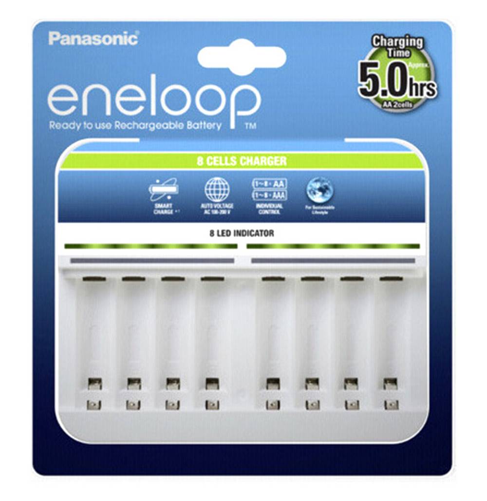 Φορτιστής Μπαταριών Panasonic Eneloop BQ-CC63E για AA/AAA 8 Θέσεων. Input: 100-240V ~ 50-60Hz 0.3A. Output AA: 1.5Vx8 – 1.2A max (500 mA average). Output AAA: 1.5Vx8 – 1.2A max (300 mA average). (οι μπαταρίες δεν περιλαμβάνονται)