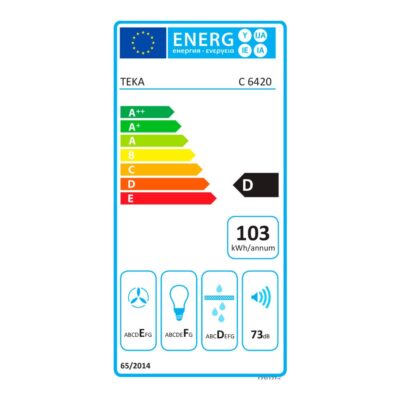 Επίπεδο θορύβου (dΒ): Μέγιστη ταχύτητα (LwA): 72 dB (*) Ελάχιστη ταχύτητα (LwA): 60 dB (*) Απορροφητική ικανότητα: Μέγιστη ταχύτητα: 375 m3/h (*) Ελάχιστη ταχύτητα: 141 m3/h (* ). Ενεργειακή κλάση: Δ (*) σύμφωνα με ΕΕ 65/2014. Εσωτερικές διαστάσεις: Εσωτερικό ύψος (mm): 175 Εξωτερικές διαστάσεις:Ύψος (mm) : 150 Πλάτος (mm): 600 Βάθος (mm): 500 Βάρος (Κgs): 8,05. Ιδιαίτερα χαρακτηριστικά Πιστοποιητικά: CE; CB; Rohs Διάμετρος εξόδου Ø (mm): 120 Κατανάλωση εσωτερικού φωτισμού(W): 1.5 Πρίζα: European plug Ισχύς (V): 230 Συχνότητα (Hz): 50 Συνολική ισχύς (W): 200 Ισχύς μοτέρ, (W): 188