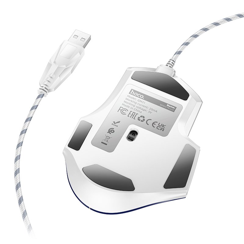 Wired Gaming Mouse Hoco GM31 Overlord 7 Buttons with Lighting 3600 DPI White-Blue
