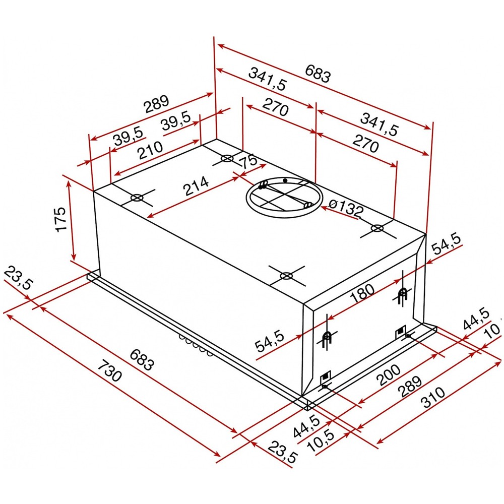 Επίπεδο θορύβου (dΒ): Μέγιστη ταχύτητα (LwA): 69 dB (*) Ελάχιστη ταχύτητα (LwA): 62 dB (*) Απορροφητική ικανότητα: Μέγιστη ταχύτητα: 329 m3/h (*) Ελάχιστη ταχύτητα: 223 m3/h (* ). Ενεργειακή κλάση: Δ (*) σύμφωνα με ΕΕ 65/2014. Εσωτερικές διαστάσεις: Εσωτερικό ύψος (mm): 175 Εξωτερικές διαστάσεις: Ύψος (mm) : 175 Πλάτος (mm): 730 Βάθος (mm): 310 Βάρος (Κgs): 6,2. Ιδιαίτερα χαρακτηριστικά Πιστοποιητικά: CE; CB; Rohs Διάμετρος εξόδου Ø (mm): 120 Κατανάλωση εσωτερικού φωτισμού(W): 1.5 Πρίζα: European plug Ισχύς (V): 230 Συχνότητα (Hz): 50 Συνολική ισχύς (W): 134 Ισχύς μοτέρ, (W): 130