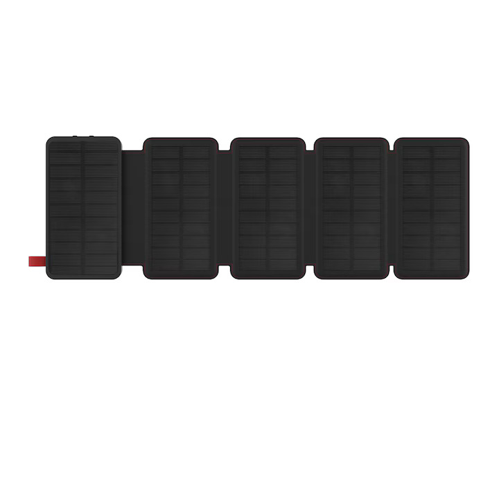 Solar Power Bank Wonder WX10S 10000mAh 5V/2A 7.5W with 5 Solar Panels, 2 x USB-A and 1 x USB-C Output and Flashlight Black