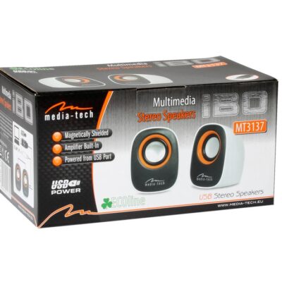 Ηχεία Stereo Media-Tech MT3137W IBO 3.5mm με Τροφοδοσία USB 6W Λευκά, Μαγνιτικά Προστατευμένα, Συγνότητες Απόδωσης: 150Hz – 20kHz, Ρύθμιση έντασης ήχου.