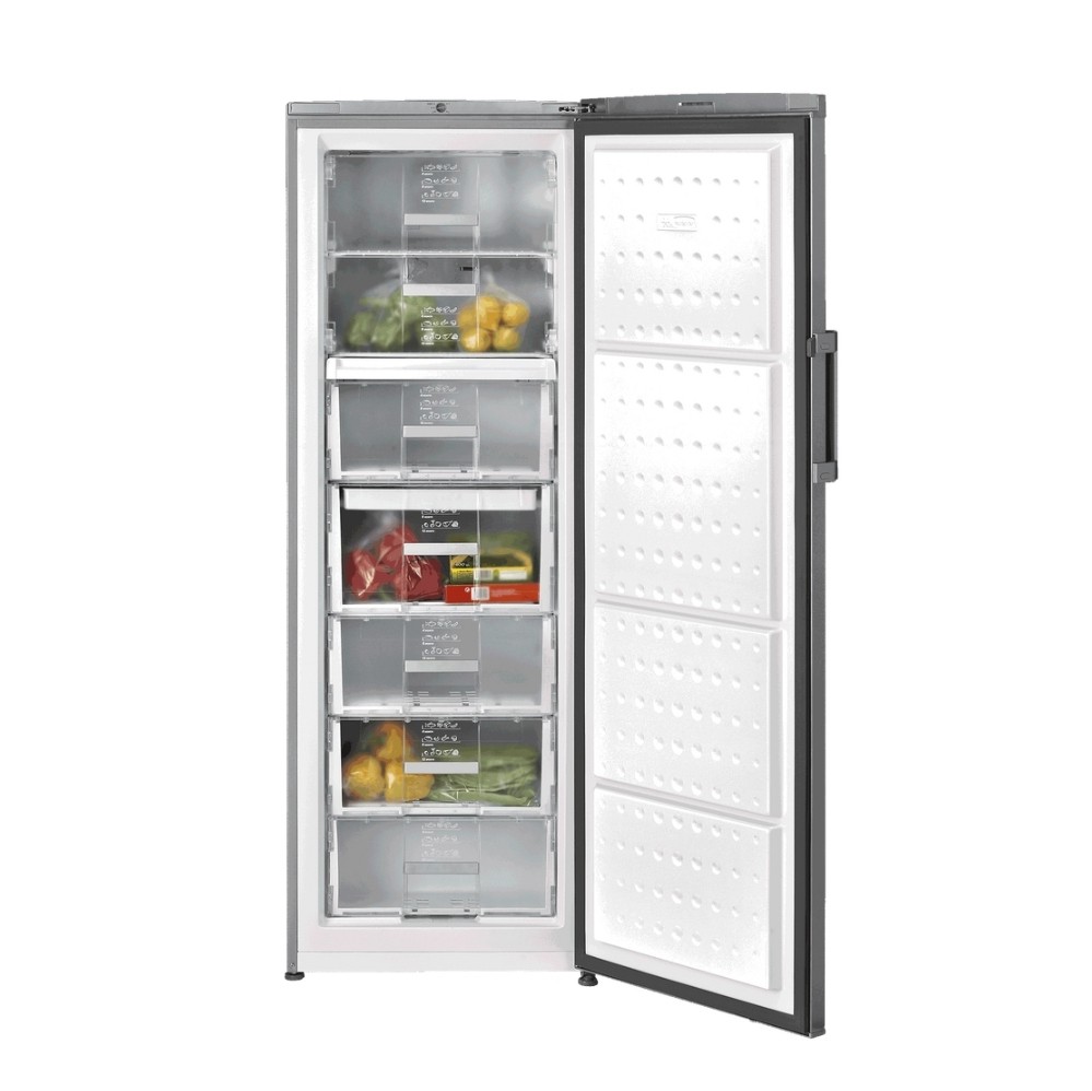 Αυτός ο ανεξάρτητος καταψύκτης 60cm σε χρώμα Inox διαθέτει σύστημα Full No Frost, μηχανικό διακόπτη ελέγχου και λειτουργία γρήγορης κατάψυξης με δυνατότητα αναστροφής της πόρτας. Ενεργειακή κλάση F με κλάση κλίματος SN-T.Επίπεδο θορύβου 39 dBA. Η ωφέλιμη χωρητικότητα είναι 250 λίτρα. Οι εξωτερικές διαστάσεις του καταψύκτη είναι: ύψος 1714mm, πλάτος 595mm και βάθος 650mm, βάρος 64,4 κιλά. Περιέχει No Frost στη συντήρηση και η συνολική μικτή χωρητικότητα είναι 290 λίτρα, ενώ η ψυκτική ικανότητα είναι 250 λίτρα. Η κατηγορία ψύξης είναι 4 και η χωρητικότητα κατάψυξης είναι 16 λίτρα. Η ετήσια κατανάλωση ενέργειας είναι 299,22 kWh/έτος, με χρόνο ανόδου θερμοκρασίας 18 ώρες. Η κλάση κλίματος είναι SN/T και το επίπεδο θορύβου είναι 39 dB. Ο καταψύκτης έχει πιστοποίηση CE. Η τροφοδοσία είναι 220-240V και η συχνότητα είναι 50Hz. Η ισχύς είναι 90W και η ισχύς κατάψυξης είναι 175W. Η κατανάλωση ενέργειας είναι 0,841 kW/ημέρα και διαθέτει ευρωπαϊκή πρίζα με μήκος καλωδίου σύνδεσης 2150cm. Περιλαμβάνει λειτουργία γρήγορης κατάψυξης, ενδεικτικές λυχνίες παρέχουν εύκολη παρακολούθηση των λειτουργιών και προστασία Antifinger στην πόρτα. Ο εξοπλισμός περιλαμβάνει 2 παγοκύστες, ρυθμιζόμενα πίσω και μπροστινά πόδια για μεγαλύτερη σταθερότητα.