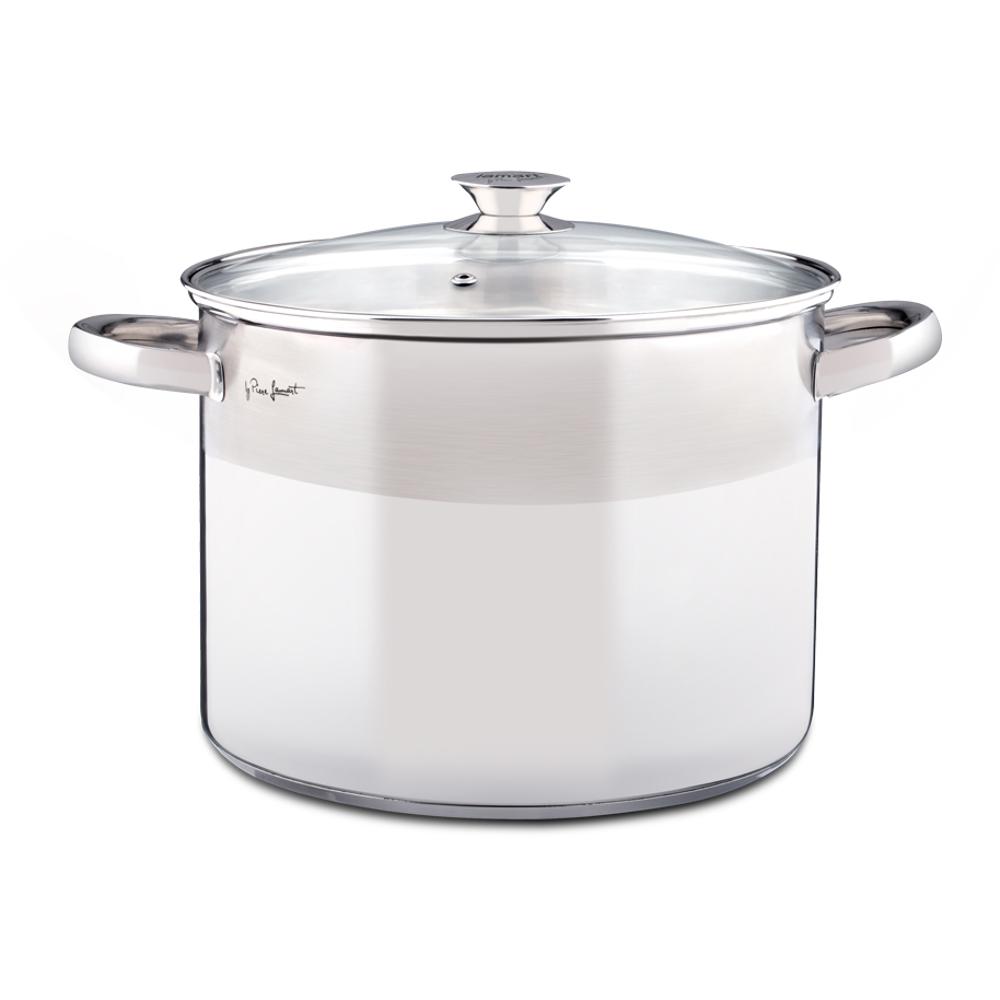 Κατσαρόλα ζυμαρικών από ανοξείδωτο ατσάλι πρώτης κατηγορίας. Αυτή η κατσαρόλα από πρώτης τάξεως ανοξείδωτο ατσάλι 18/0 έχει συμπαγής βάση. Η εσωτερική κατσαρόλα από ανοξείδωτο ατσάλι 18/10 χρησιμεύει ως ατμομάγειρας ή σουρωτήρι και έχει τις δικές του άνετες λαβές για ανεξάρτητο χειρισμό Καπάκι από ανθεκτικό γυαλί με έξοδο ατμού για ακριβή έλεγχο μαγειρέματος. Διαστάσεις: Ø 24 cm; Ύψος 17,5 cm. Όγκος: 8 L