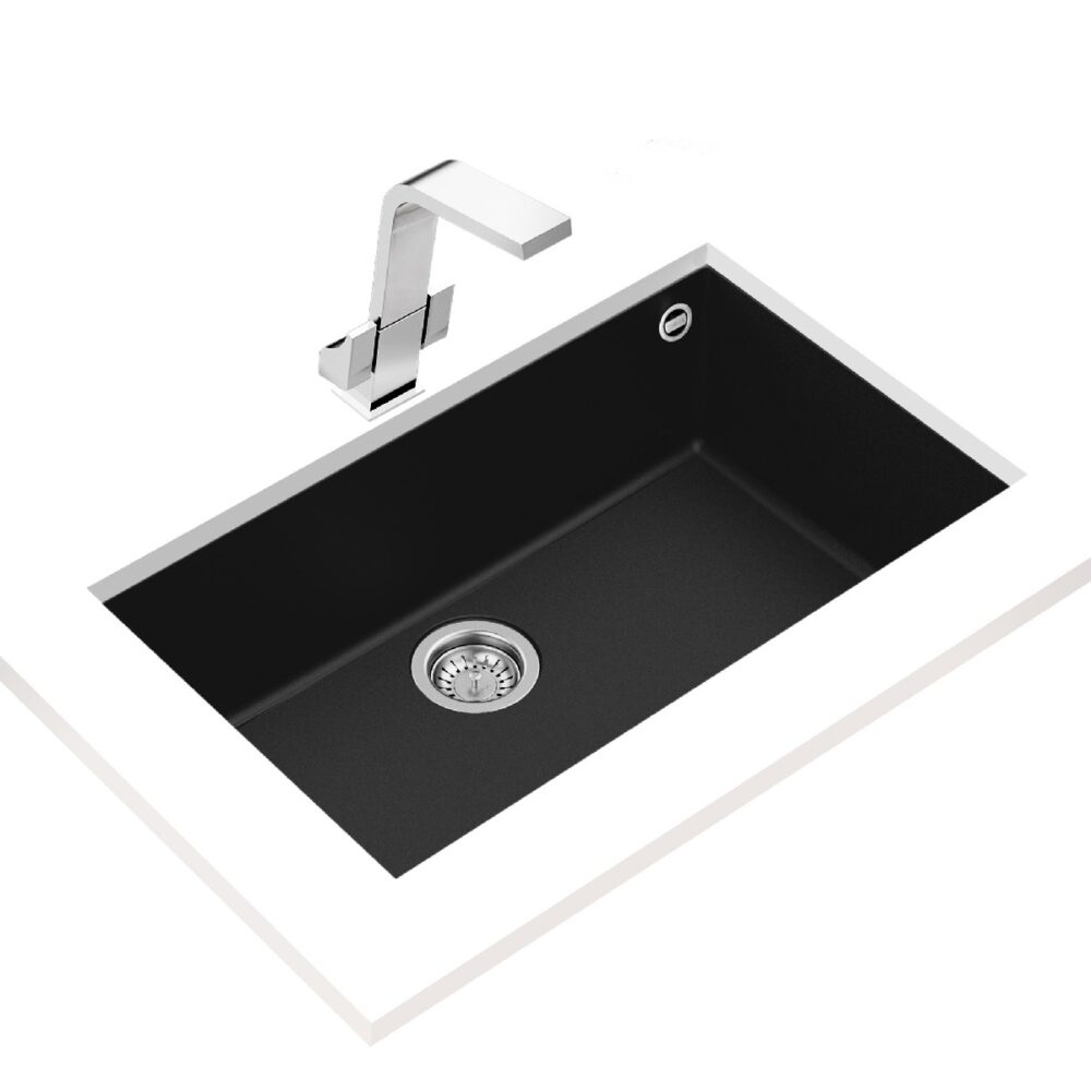 Liquid Granite Sink TEKA Single Bowl Undermount Installation 76x44cm SQUARE 72 MAESTRO Black