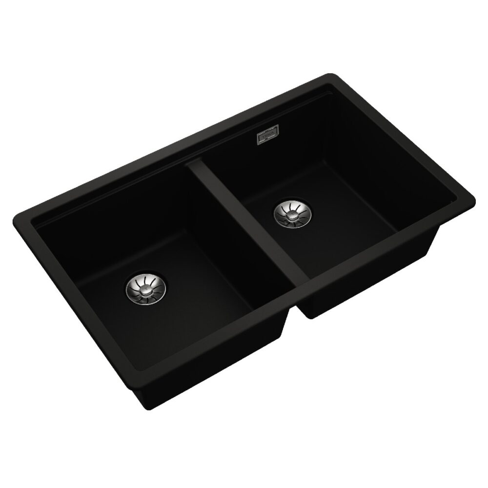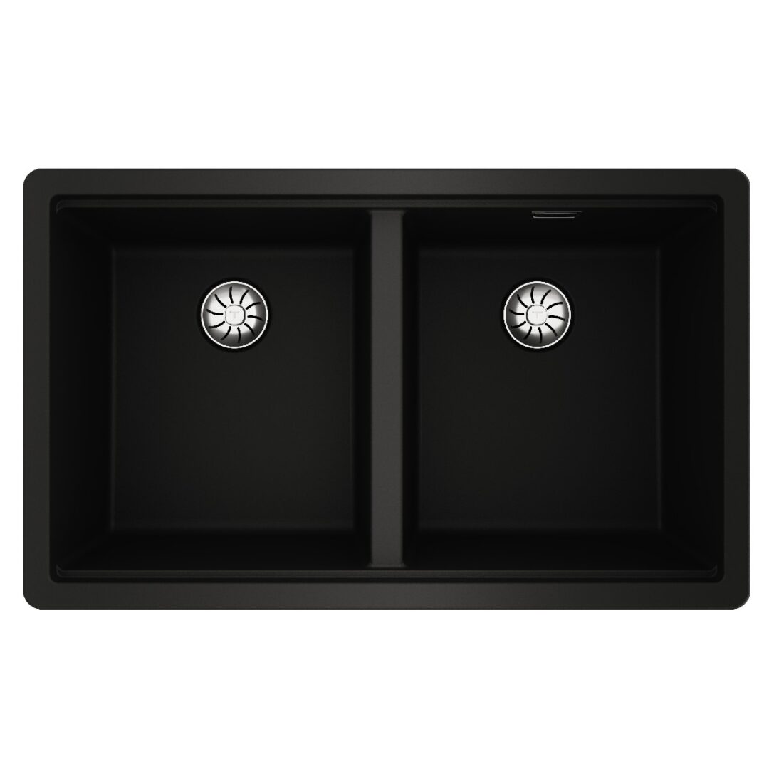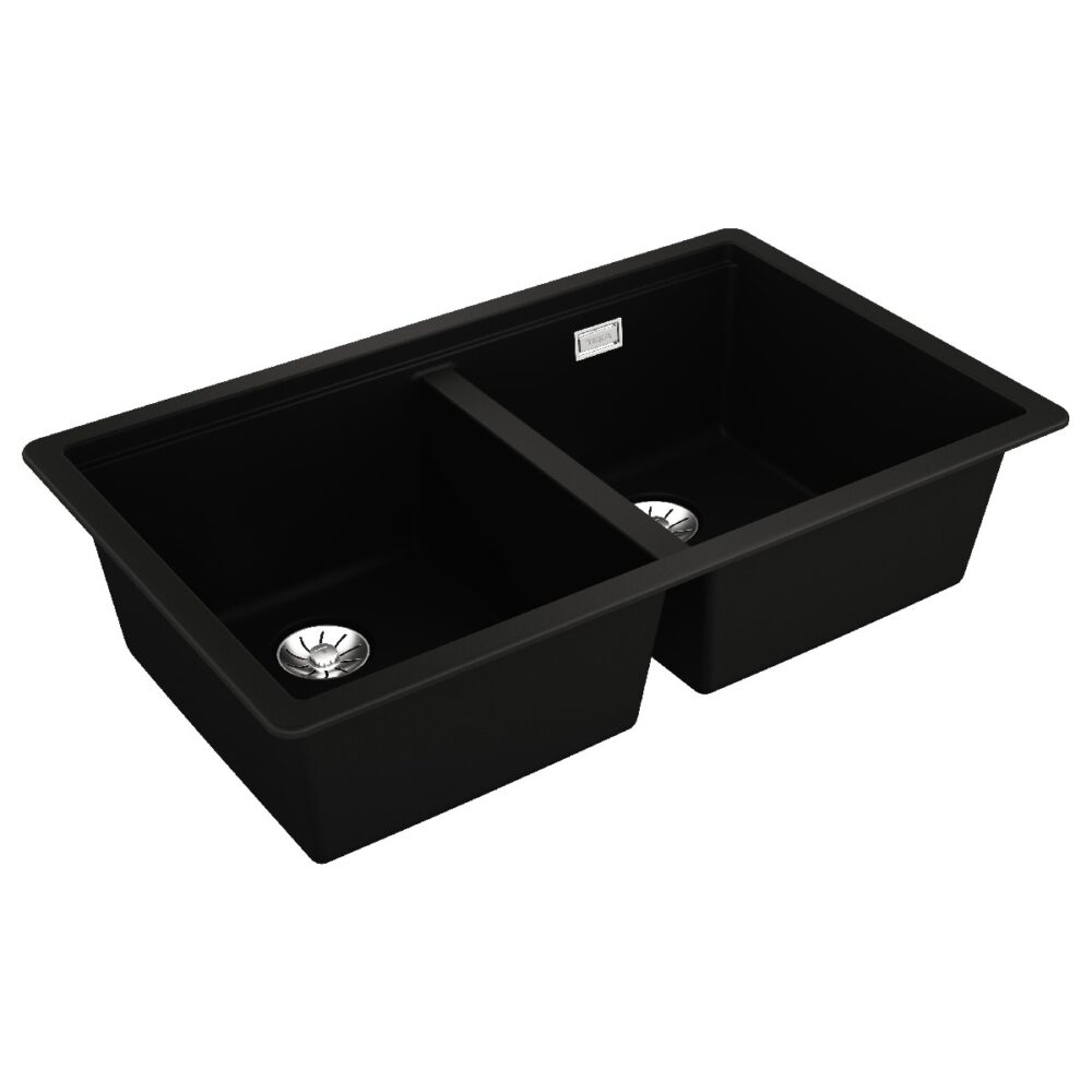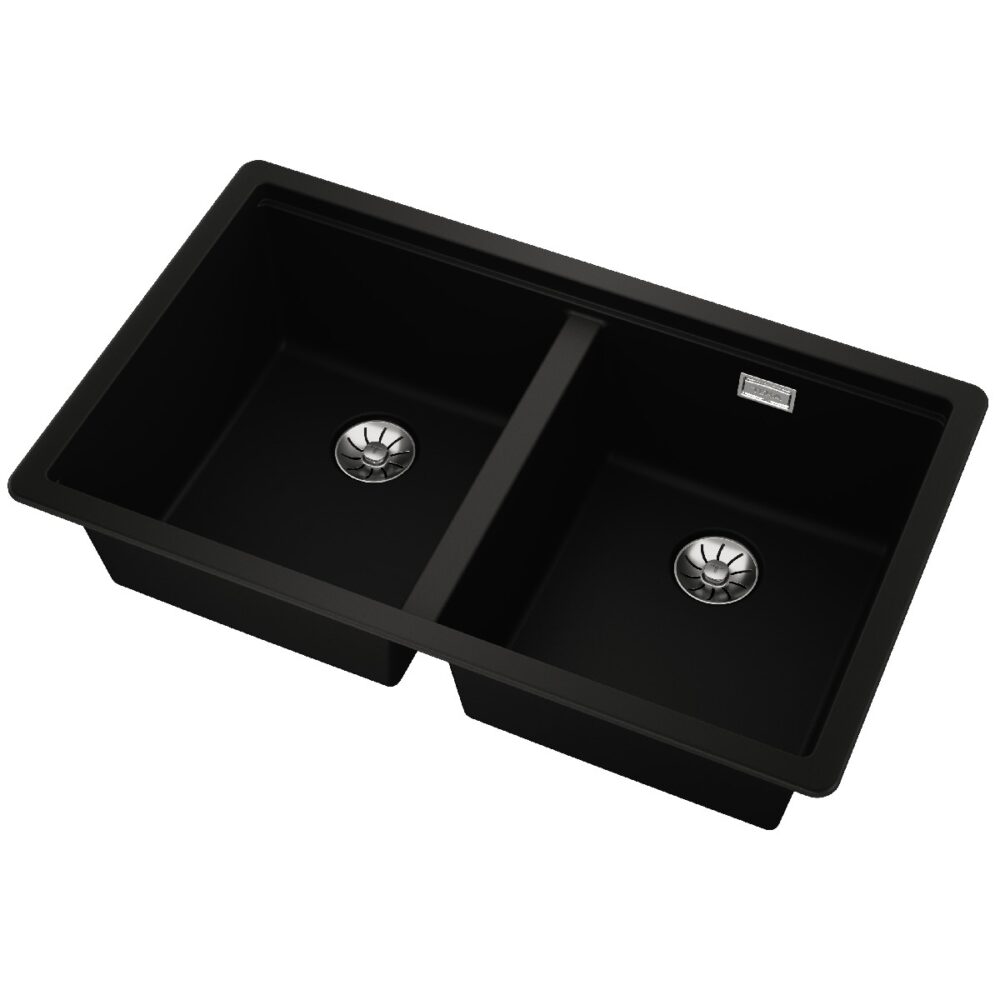 Liquid Granite Sink TEKA Double Bowl Undermount Installation 75×45.6 cm RADEA R10 MAESTRO Black