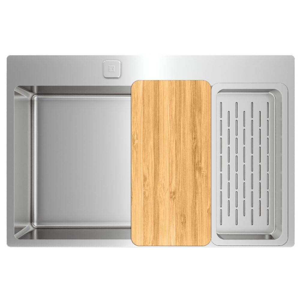 Η σειρά ForLinea προσφέρει ένα κομψό και λειτουργικό ανοξείδωτο νεροχύτη με μία μεγάλη λεκάνη. Ο νεροχύτης διαθέτει δυνατότητες εγκατάστασης 2 σε 1, επιτρέποντας είτε την τοποθέτηση πάνω από τον πάγκο είτε σε επίπεδο με αυτόν. Με ακμές R15, καθαρίζεται εύκολα και γρήγορα, ενώ οι διαστάσεις της κύριας λεκάνης (710 mm μήκος, 400 mm πλάτος, 200 mm βάθος) προσφέρουν άφθονο χώρο για όλες τις εργασίες σας. Διαθέτει σύστημα σιφονιού με αυτόματο καλάθι 3½” και κομψή διακοσμητική κάλυψη. Χάρη στην τεχνολογία SilentSmart, ο νεροχύτης μειώνει τον θόρυβο κατά 50%, προσφέροντας μια πιο ήσυχη εμπειρία χρήσης. Στην συσκευασία περιλαμβάνονται αξεσουάρ όπως μία ξύλινη επιφάνεια κοπής από μπαμπού και μια ανοξείδωτη σουρωτήρα, καθιστώντας τον ιδανικό για την κουζίνα σας. Με βάρος 5,6 kg και διαστάσεις 500 mm πλάτος και 750 mm μήκος, αποτελεί την ιδανική επιλογή για μονάδες βάσης 80 cm.