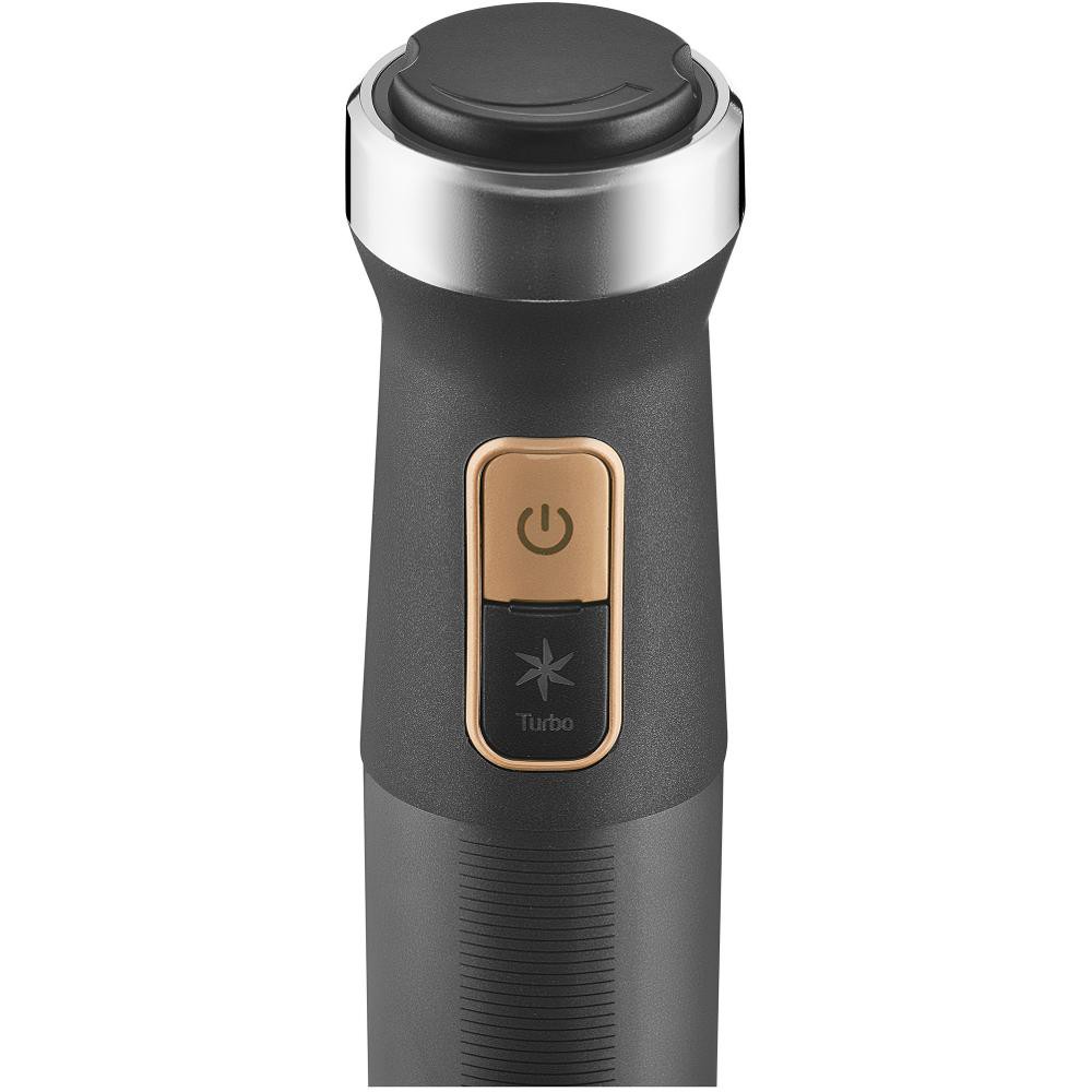 Μπλέντερ χειρός 4 σε 1 10 ΧΡΟΝΙΑ ΕΓΓΥΗΣΗ για κινητήρα TITANIUM QuadBlade Technology Είσοδος ισχύος 1 500 W Πλήρες πόδι από ανοξείδωτο χάλυβα με 20 cm μήκος συνεχούς ελέγχου ταχύτητας Εργονομικά σχήμα λαβή Εξάρτημα από ανοξείδωτο χάλυβα που μπορεί επίσης να χρησιμοποιηθεί για ανάμειξη ατσαλιού Αξεσουάρ λεπίδας 800 ml Ποτήρι με καπάκι Potato Smasher Ανοξείδωτο ατσάλι Διπλό κόφτης 500 ml με λεπίδες από ανοξείδωτο ατσάλι Μύλος για μπαχαρικά <(>&<)> Βότανα 1,5 L Επεξεργαστής τροφίμων με 2 κουμπιά απελευθέρωσης λεπίδων από ανοξείδωτο χάλυβα Milk Frother Special Flexible Supp