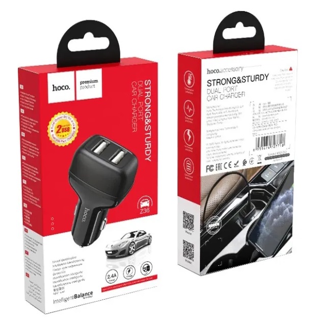 Φορτιστής Αυτοκινήτου Hoco Z36 Leader με 2 Εξόδους USB 5V 2.4A Max Μαύρο