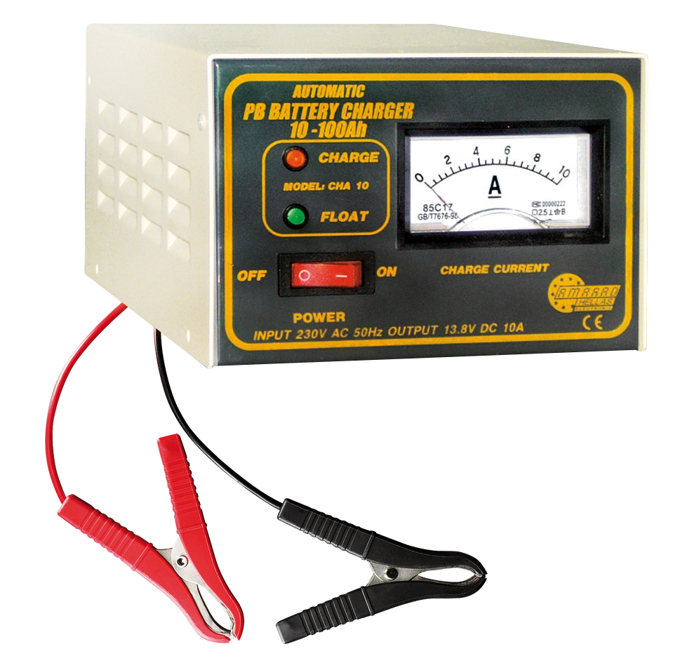 Τάση εισόδου: 230V AC 50/60HzΤάση εξόδου: 12V DCΡεύμα φόρτισης: 10A maxΠροστασία από: Υπερθέρμανση, υπερφόρτωσηΕνδείξεις: Λειτουργιών με LED και αναλογικές ενδείξεις ρεύματος φόρτισηςΚατάλληλος για την: Φόρτιση μπαταριών μολύβδου 12V (100Ah)Περιλαμβάνει: Καλώδια φόρτισηςΔιαστάσεις: 145χ230χ115 mmΒάρος: 4,2 kgr