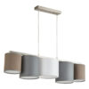 Μοντέρνο καπέλο καφέ, με opal ακρυλικό από κάτω για ομοιόμορφη διάχυση του φωτισμού. Με δυνατότητα τοποθέτησης και στην οροφή και κρεμαστό. Μοντέρνο, απλό, ατμοσφαιρικό και με πολύ καλό φως. Δέχεται 5 λάμπες Ε27.