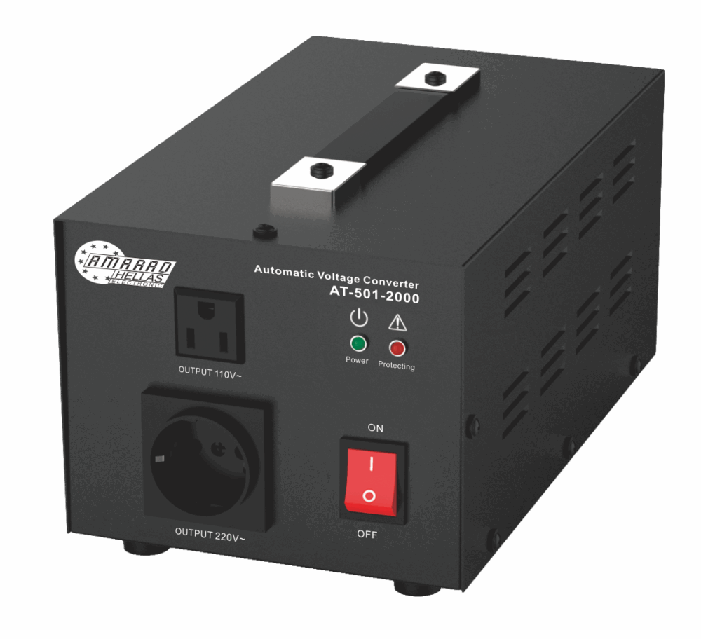 Τάση εισόδου / εξόδου: 110V AC 50/60 Hz ή 230V AC 50/60Hz (αυτόματη επιλογή)Ισχύς: 2000VA maxΕνδείξεις: Λειτουργιών με LEDΠροστασία από: Βραχυκύκλωμα, υπόταση, υπέρταση, υπερθέρμανσηΣτεγανότητα: IP20Διαστάσεις: 275x165x130 mmΒάρος: 7,01 Kgr