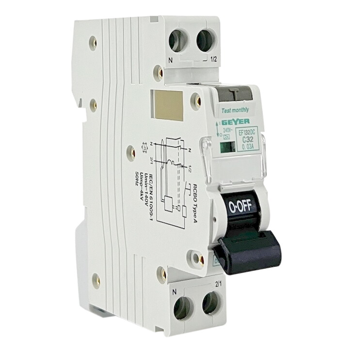 Χαρακτηριστικά Ρελέ διαρροής με αυτόματη ασφάλεια μιας θέσης, 32Α καμπύλης C,6kA, 30mA τύπου Α.