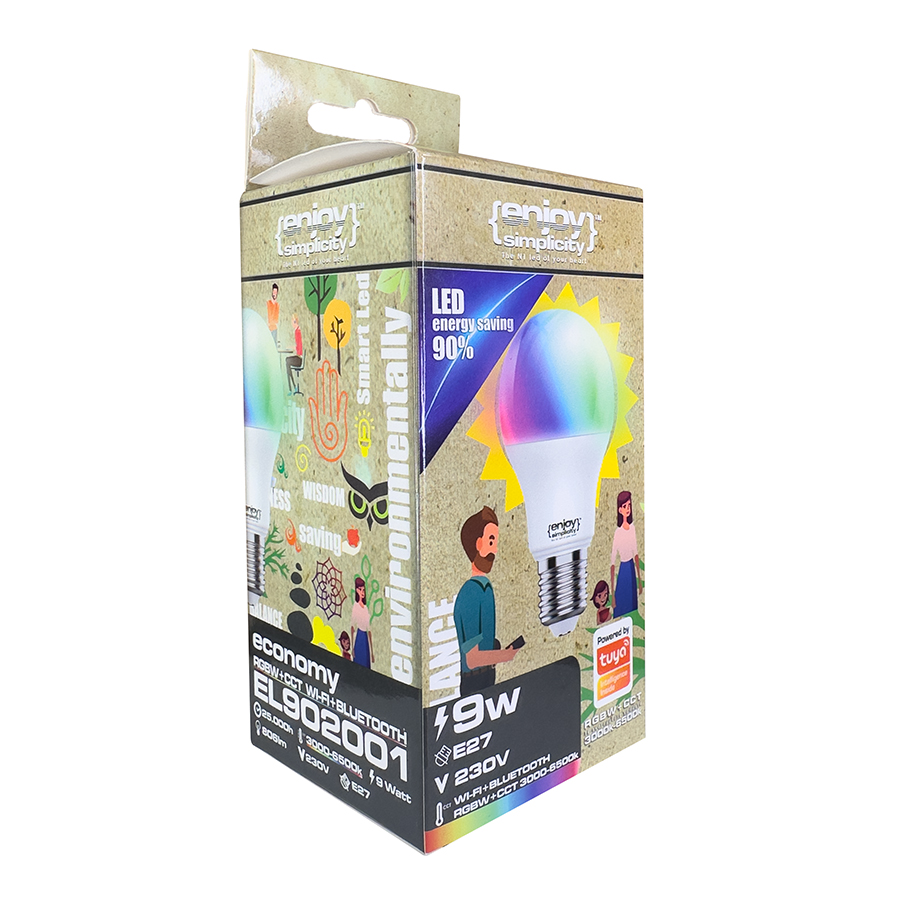 EL902001 | EL902001 | SMART Wi-Fi+BLE RGBW+CCT A60 LED 9W(>60W)|E27|3000-6500k|806lm|{enjoysimplicity}™