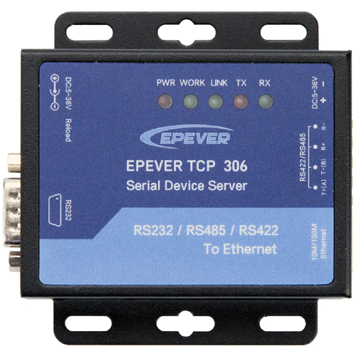 O προσαρμογέας σειριακής θύρας δικτύου EPEVER TCP 306 συνδέεται με συσκευές μέσω της διασύνδεσης RS485 και της δικτυακής επικοινωνίας TCP. Μεταφέρει δεδομένα στην πλατφόρμα cloud της EPEVER, επιτρέποντας την απομακρυσμένη παρακολούθηση, ρύθμιση παραμέτρων και ανάλυση δεδομένων των ρυθμιστών ηλιακής ενέργειας και των inverter ( υβριδικών και μη). Επιτρέπει επίσης την απλή και βολική λειτουργία μέσω του εργαλείου διαμόρφωσης στον Η/Υ για τροποποίηση διευθύνσεων IP του μοντέλου TCP, λειτουργίας διακομιστή TCP, λειτουργίας client TCP και άλλα.