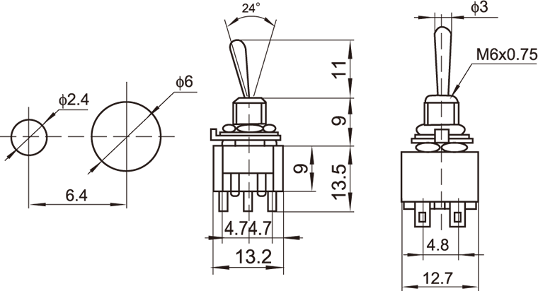 Max. Voltage: 250VFunction : ON-OFF-ONRating: 6A 125VAC/ 3A 250VAC