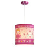 Πρόκειται για ένα κρεμαστό παιδικό φωτιστικό με λευκή ρυθμιζόμενη ανάρτηση και πολύχρωμο καπέλο.