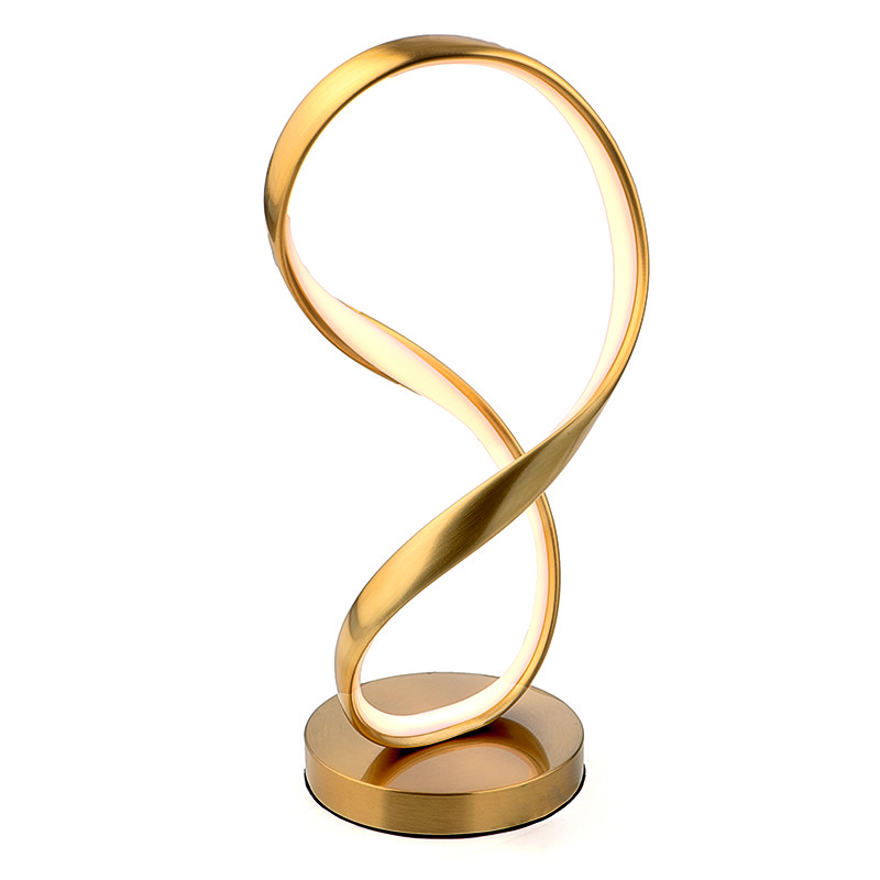 Πρόκειται για ένα επιτραπέζιο φωτιστικό κατασκευασμένο από αλουμίνιο σε χρυσή ματ απόχρωση. Η λευκή ακρυλική επιφάνεια σε όλο το σώμα του καλύπτει τον led φωτισμό θερμής απόχρωσης. Το ιδιαίτερο και αφαιρετικό σχήμα του το τοποθετεί σε μοντέρνους χώρους.