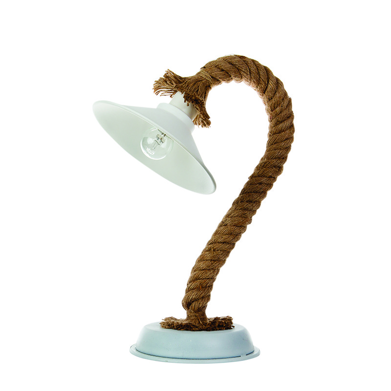 Επιτραπέζιο φωτιστικό με συνδυασμό καφέ σχοινιού και λευκού μετάλλου. Μπορεί να διακοσμήσει οποιονδήποτε εσωτερικό χώρο, όπως σαλόνι και κρεβατοκάμαρα.