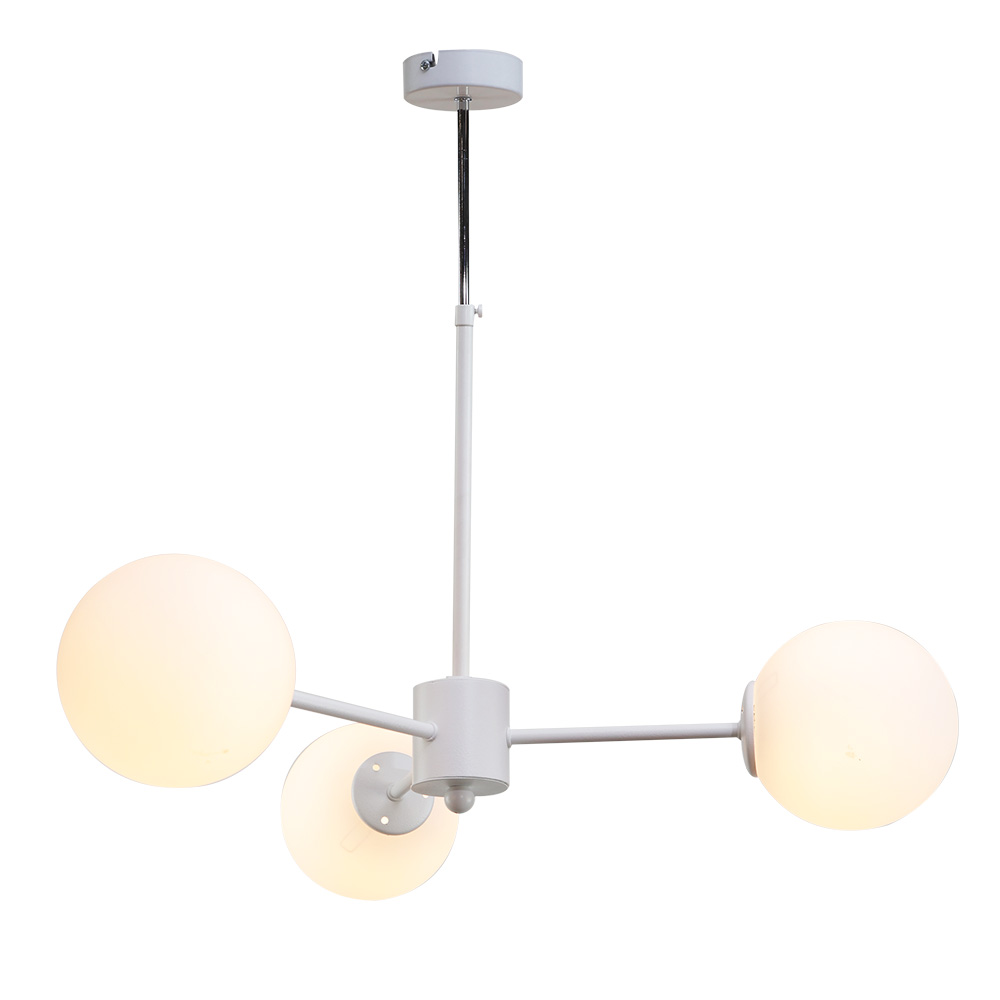 Κρεμαστό φωτιστικό από λευκό μέταλλο και λευκή οπαλίνα