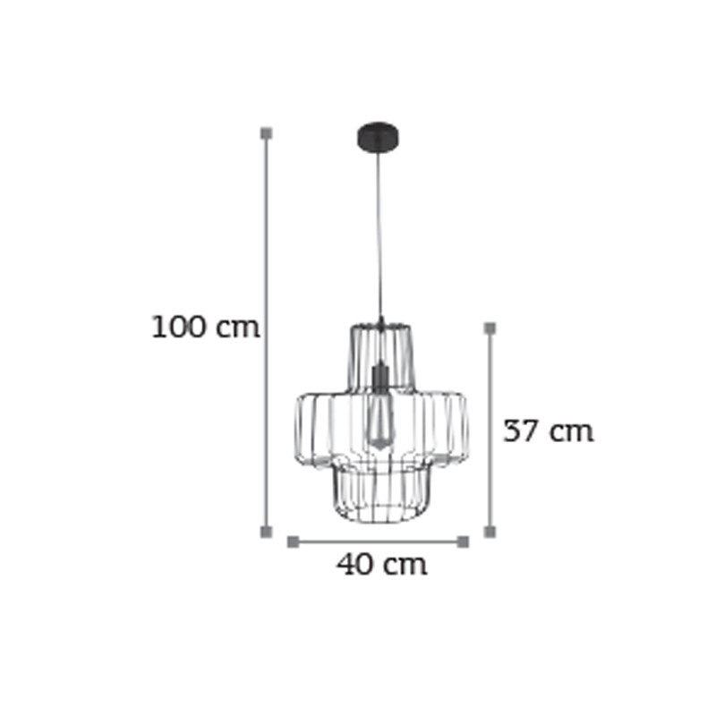 Πρόκειται για ένα μαύρο μεταλλικό κρεμαστό φωτιστικό σε ιδιαίτερη διάτρητη σχεδίαση. Η ανάρτησή του είναι ρυθμιζόμενη για να προσαρμόζεται στον κάθε χώρο.
