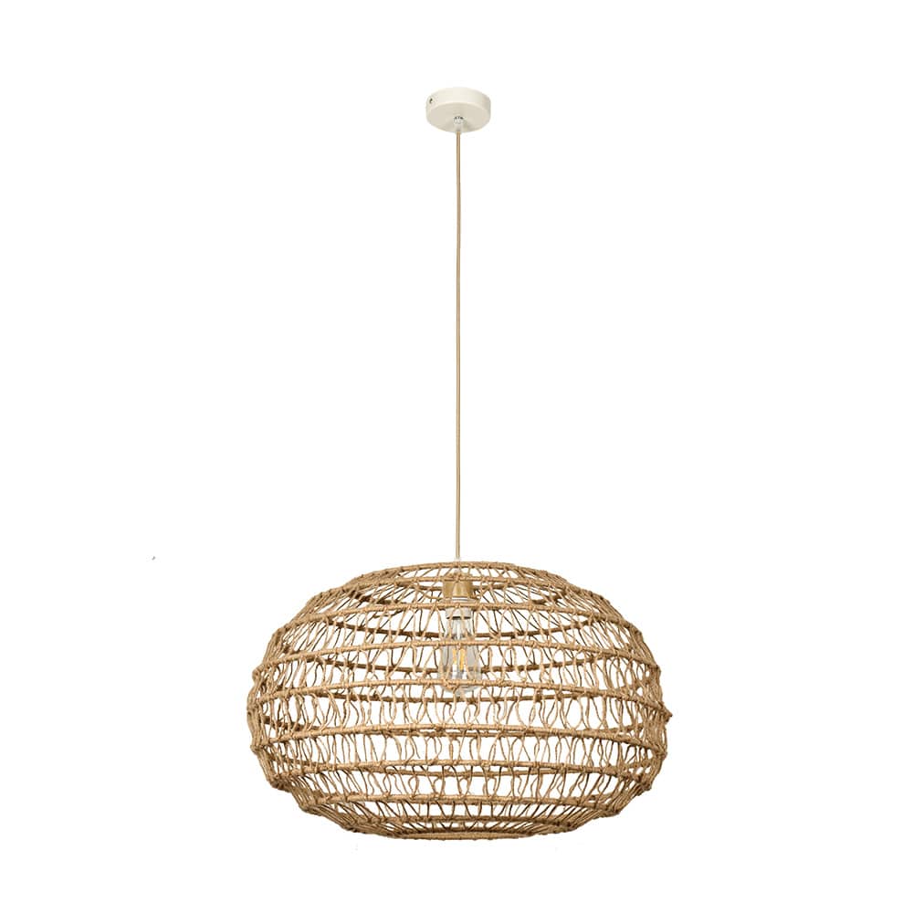 Ένα κρεμαστό φωτιστικό κατασκευασμένο από καφέ σχοινί κατάλληλο για ποικίλους εσωτερικούς χώρους. Αποτελεί την ιδανική επιλογή για όποιον επιθυμεί μια πιο χαλαρή διάθεση στον χώρο του.