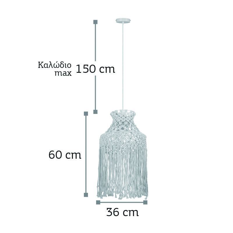 Πρόκειται για ένα woolen κρεμαστό φωτιστικό σε ανοιχτή μπεζ απόχρωση. Ταιριάζει σε χώρους με boho αισθητική. Η ανάρτησή του είναι λευκή και ρυθμιζόμενη ώστε να προσαρμόζεται ιδανικά στον κάθε χώρο.