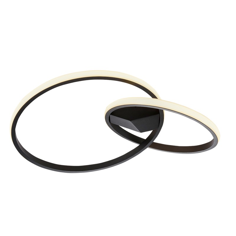 Πρόκειται για ένα μαύρο φωτιστικό οροφής με κυκλική σχεδίαση κατασκευασμένο από αλουμίνιο. Η λευκή ακρυλική του επιφάνεια καλύπτει τον led φωτισμό θερμής απόχρωσης.