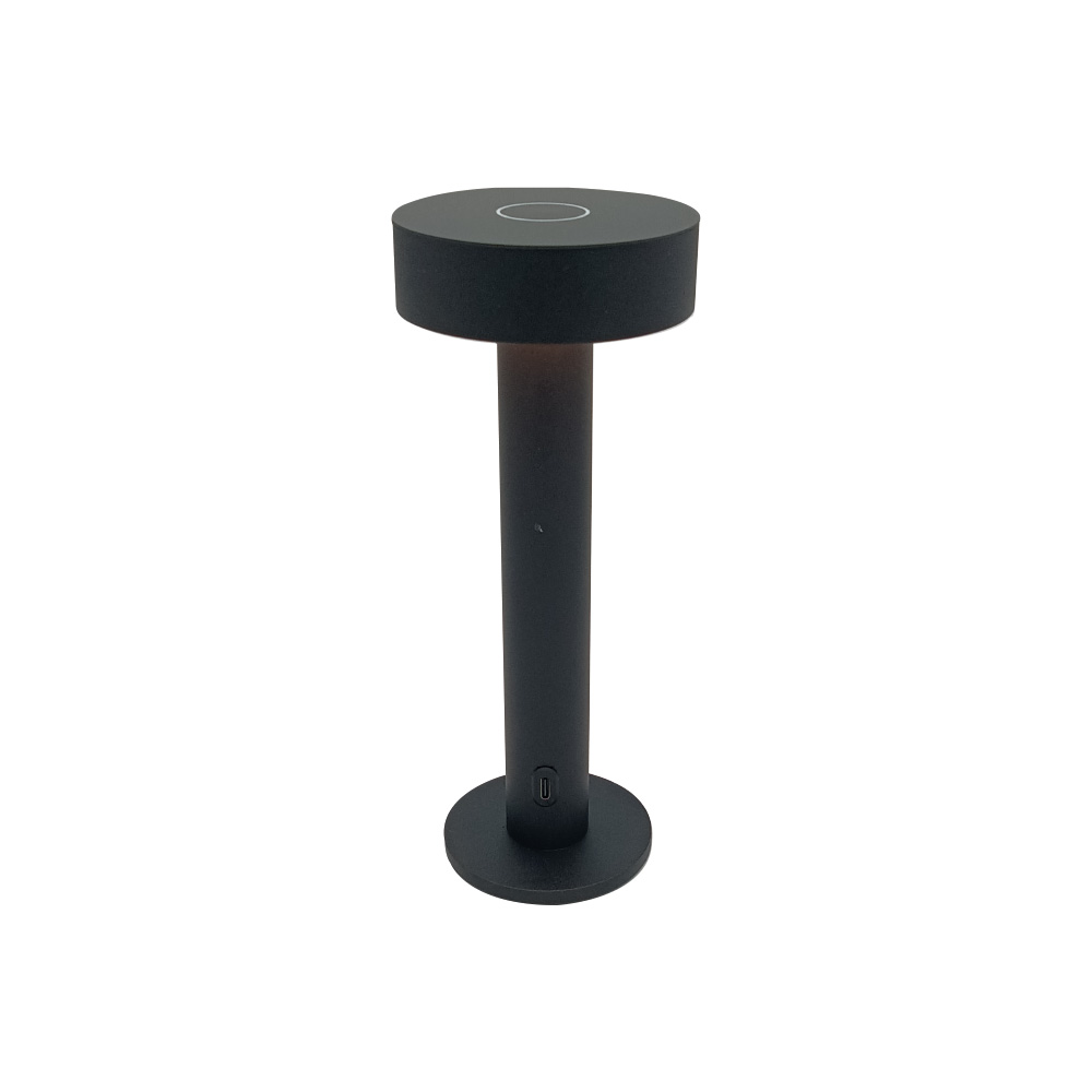 Επαναφορτιζόμενο φωτιστικό LED σε μαύρο χρώμα. Είναι ρυθμιζόμενο και η θερμοκρασία χρώματος μπορεί να αλλάξει από 3000K σε 6000Κ με την αφή.
