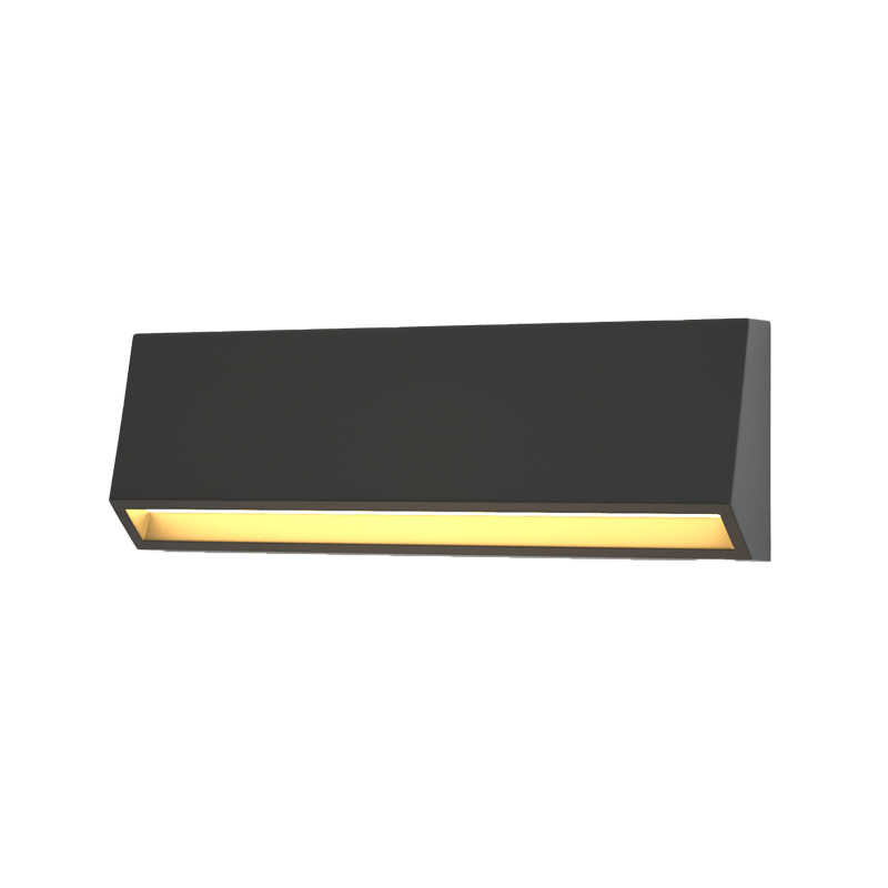 Επιτοίχιο φωτιστικό LED από την οικογένεια Blue σε Ανθρακί χρώμα. Η θερμοκρασία χρώματος μπορεί να αλλάξει από 3000K σε 6000K κατά την εγκατάσταση από τον διακόπτη που παρέχεται στην πλακέτα.
