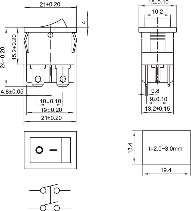 Max. Voltage: 250VFunction : ON-OFFRating: 10A 125VAC/3A 250VAC