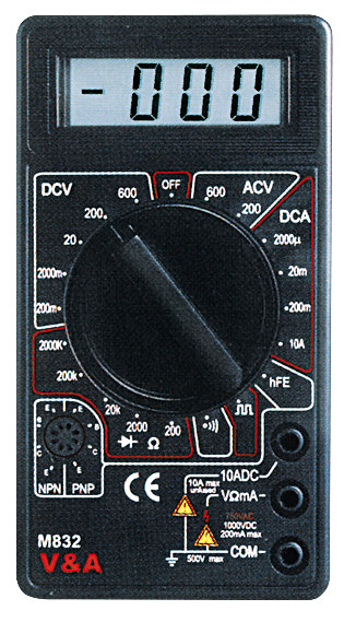 DC Τάση: 200m/ 2/ 20/ 200V ±0.5% 1000V ±0.8%AC Τάση: 20/ 750V ±1.2%DC Ρεύμα: 2m/ 20m ±1% 200mA ±1.5% 10A ±0.8%Αντίσταση: 200Ω/ 2Κ/ 20Κ/ 200Κ ±0.8% 2ΜΩ ±1%Διαθέτει Έλεγχο: Διόδου, τρανζίστορ (hFE), ωμικής συνέχειας με βομβητή (buzzer)Τροφοδοσία: 9V μπαταρία (Περιλαμβάνεται στην συσκευασία)Διαστάσεις: 70x126x24 mmΒάρος: 0,170 Kgr