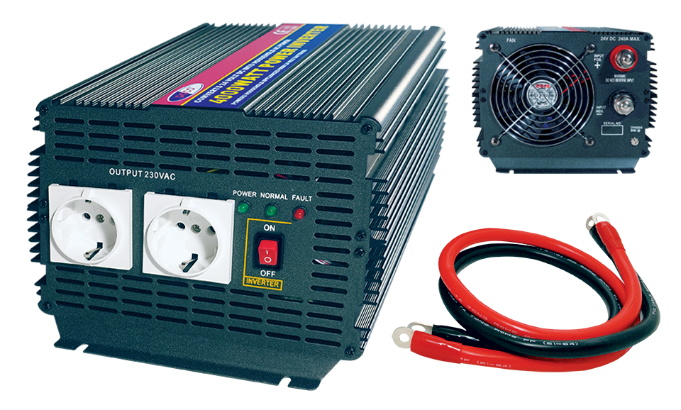 Τάση εισόδου: 24V DC Τάση εξόδου: 230VAC 50/60HzΙσχύς: 4000VA maxΠρίζες εξόδου: 2 σούκο Προστασία από: Bραχυκύκλωμα, υπερφόρτωση, υπερθέρμανση Διαθέτει: Δυνατότητα ψύξης με ανεμιστήραΕνδείξεις: Λειτουργιών με LEDΚατάλληλο για την: Τροφοδοσία φορητών υπολογιστών, τηλεοράσεων, fax,