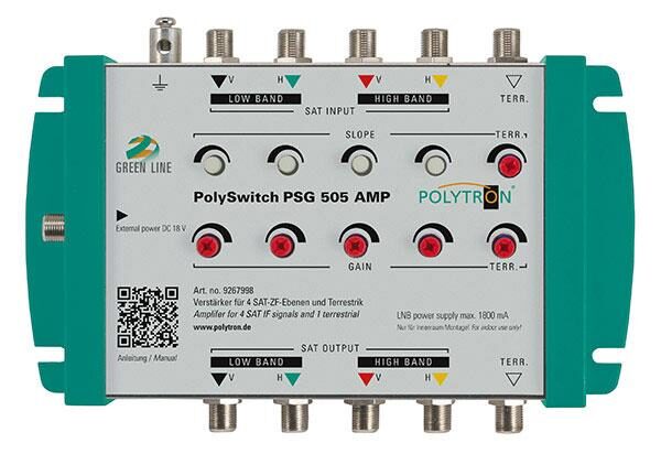 PSG 505 AMP Ενισχυτής Γραμμής 5/5, 1 δορυφόρος + 1 επίγεια, 5 εξόδων, 21dB Sat, 15 dB, με Τροφοδοτικό, POLYTRON