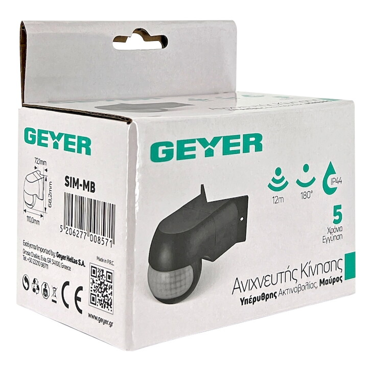 Περιγραφή (EN) Wall mounted PIR Sensor 180° 12m IP44 black